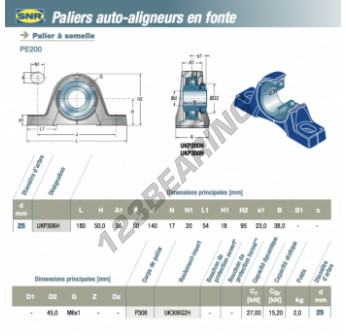 Zespoły łożyskowe 2 śruby, znany pod numerem referencyjnym UKP306H-SNR SNR, posiada średnicę otworu 25 mm oraz rozstaw otworów montażowych 140 mm. Ten produkt został wykonany z materiału żeliwo, a typ mocowania to Tuleja zaciskowa.