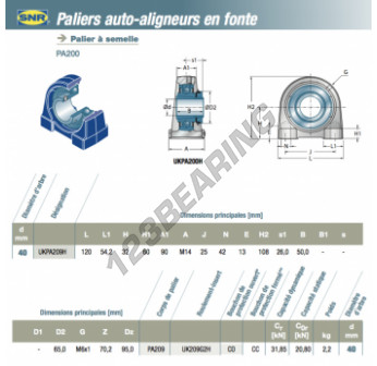 Zespoły łożyskowe 2 śruby, znany pod numerem referencyjnym UKPA209H-SNR SNR, posiada średnicę otworu 40 mm oraz rozstaw otworów montażowych 90 mm. Ten produkt został wykonany z materiału żeliwo, a typ mocowania to Tuleja zaciskowa.