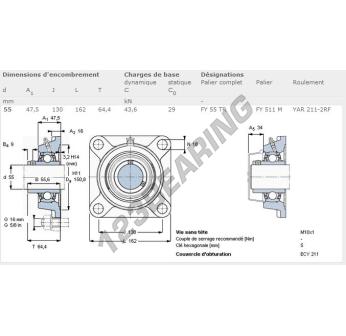 Zespoły łożyskowe 4 śruby, znany pod numerem referencyjnym FY55-TR-SKF marki SKF, ma średnicę otworu 55 mm oraz rozstaw otworów montażowych 130 mm. Ten model jest wykonany z żeliwo, a typ mocowania to Śruba ustalająca.