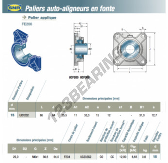 Zespoły łożyskowe 4 śruby, znany pod numerem referencyjnym UCF202-SNR marki SNR, ma średnicę otworu 15 mm oraz rozstaw otworów montażowych 64 mm. Ten model jest wykonany z żeliwo, a typ mocowania to Śruba ustalająca.