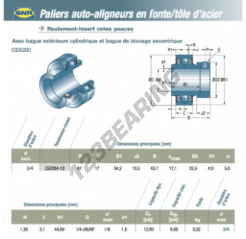 Wkładka Wymienna, znane pod numerem referencyjnym CEX204-12-SNR SNR, mają średnicę wewnętrzną 19.05 mm, średnicę zewnętrzną 47 mm oraz grubość 17 mm. Wykonane są z .