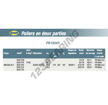 Wkładka Wymienna, znane pod numerem referencyjnym FR180X5-SNR SNR, mają średnicę wewnętrzną mm, średnicę zewnętrzną mm oraz grubość mm. Wykonane są z .