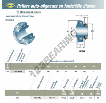 Wkładka Wymienna, znane pod numerem referencyjnym UK319-G2-H2319-SNR SNR, mają średnicę wewnętrzną 85 mm, średnicę zewnętrzną 200 mm oraz grubość 50 mm. Wykonane są z .