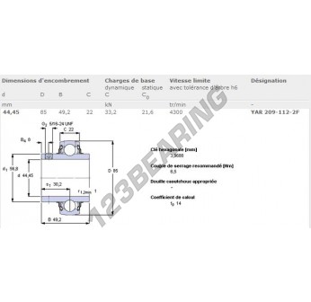 Wkładka Wymienna, znane pod numerem referencyjnym YAR209-112-2F-SKF SKF, mają średnicę wewnętrzną 44.45 mm, średnicę zewnętrzną 85 mm oraz grubość 49.2 mm. Wykonane są z żeliwo.