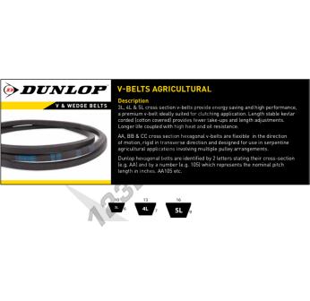 Przekładnia pasowa 4L350K-DUNLOP z rodziny Pasek Klinowy Owijany, marki DUNLOP i profilu 4L. Ma przekrój 12.70mm x 9mm o długości wewnętrznej 839 mm, długości zewnętrznej 889 mm i długości podziałowej 919 mm.